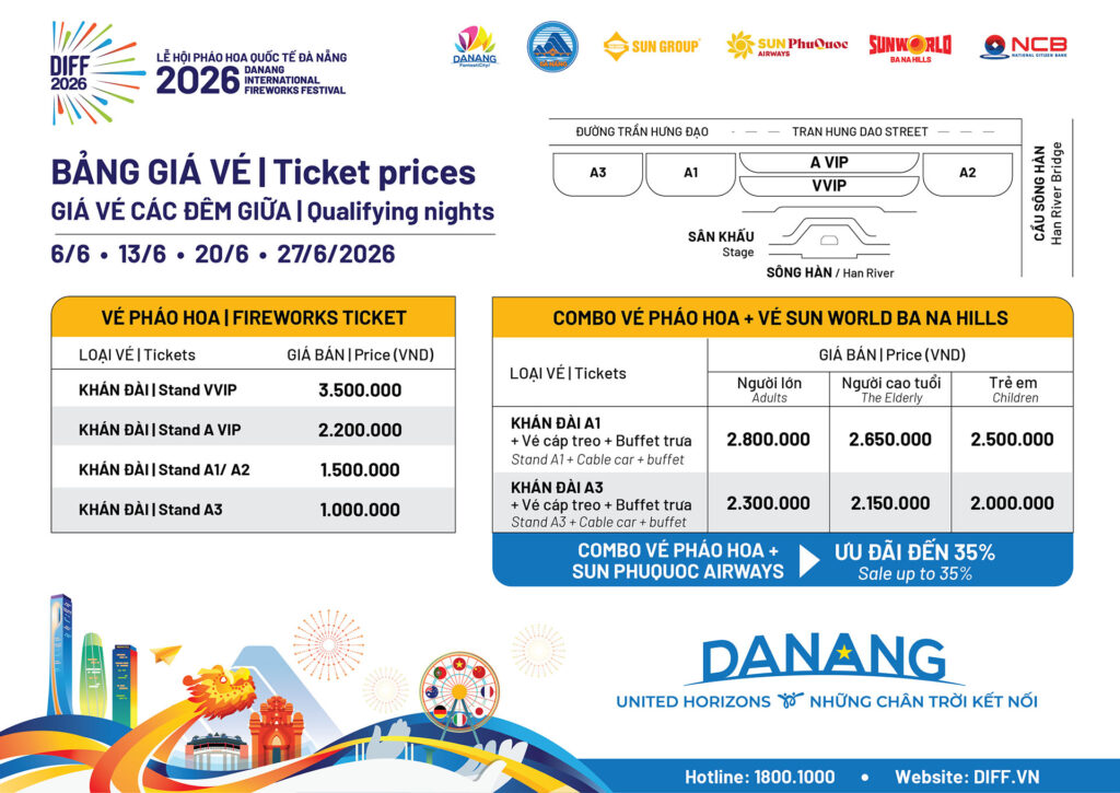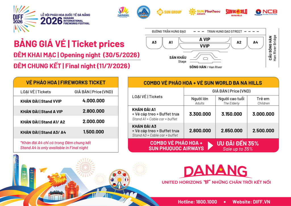 Giá vé DIFF 2026 – Cập nhật giá vé Lễ hội pháo hoa Đà Nẵng 2026 và lịch thi đấu mới nhất